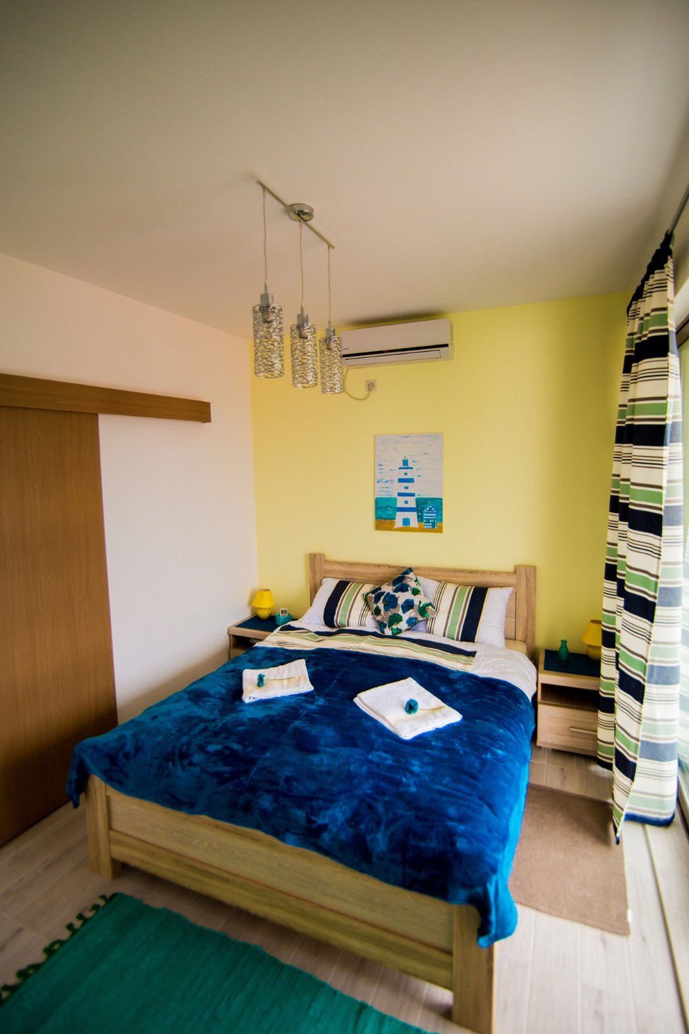 A Modern 1BHK Home Finished with Yellow, Blue & Wooden