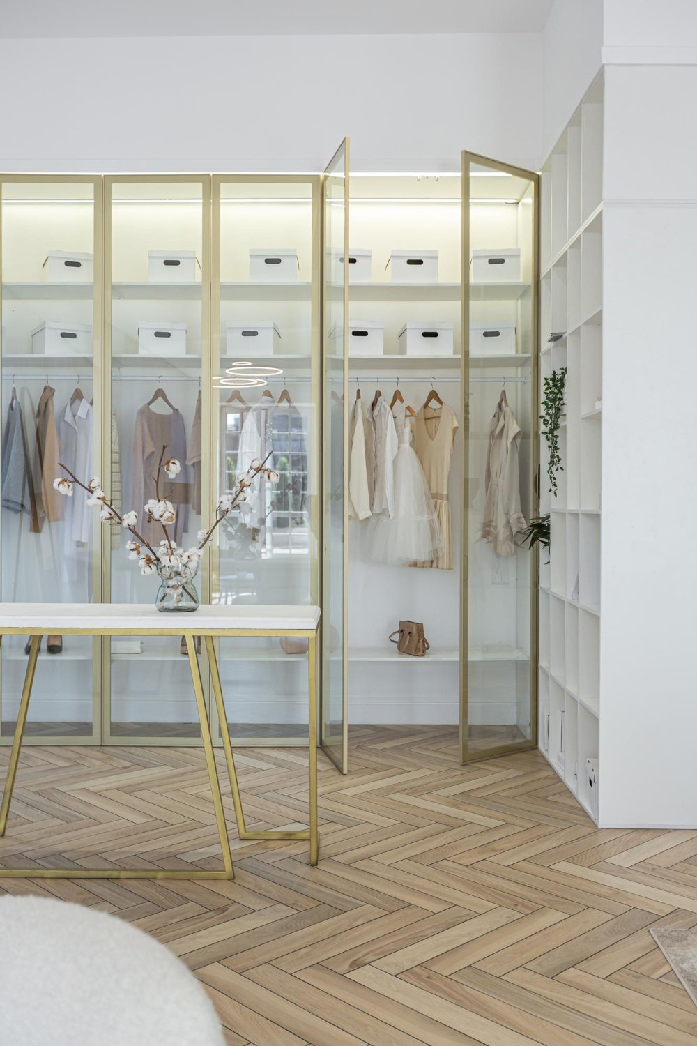 Walk in Wardrobe Finished with Golden Frame & White Laminates