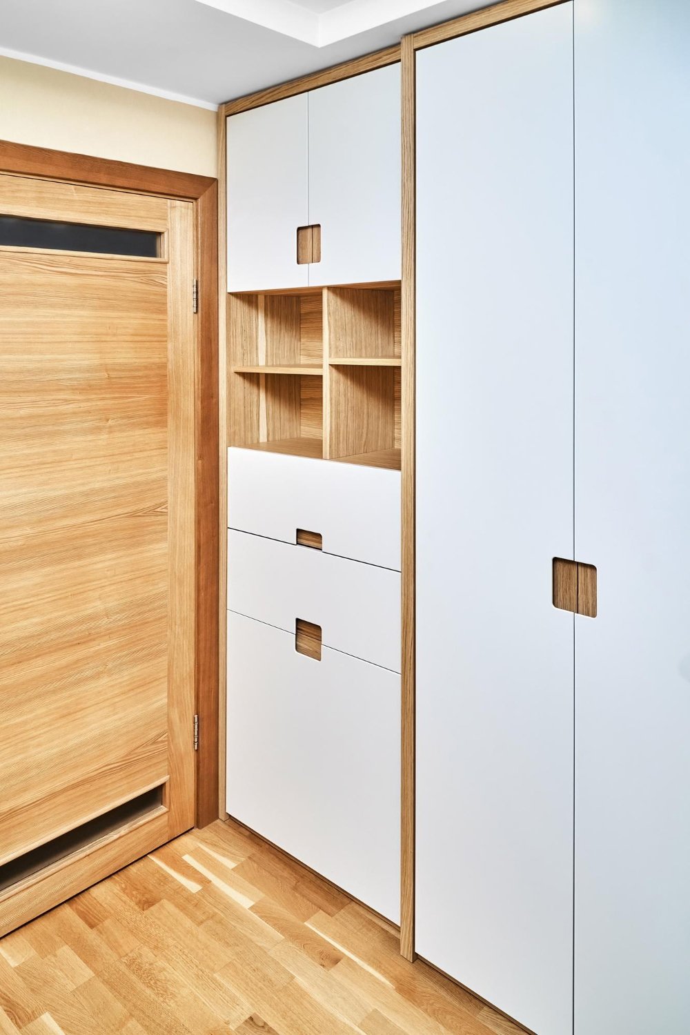 Wardrobe Design Finished with Wooden and White Laminate
